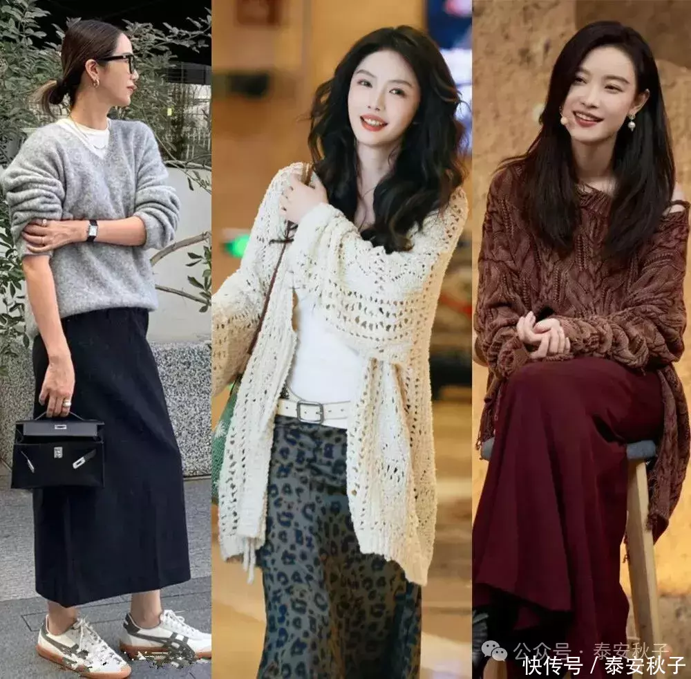 秋天的时候,温柔软糯的毛衫遇上优雅得体的半身裙,可以“激活”出一种浪漫优雅的格调。