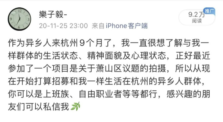 《异乡人》的故事,从一条深夜的微博开始