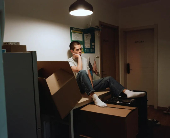 我拍他的时候,他正收拾着各种行李,却不知道下一步应该去哪里。生活一地鸡毛。