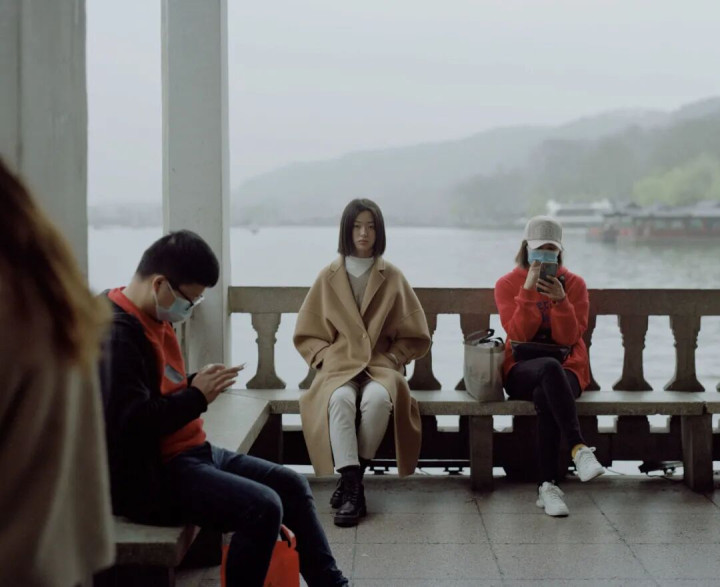我们就约在了西湖边上的一个凉亭,散步累了休息,拍下了这张。她有着跟我们很相似的面孔,但状态显然跟周遭的人截然不同。