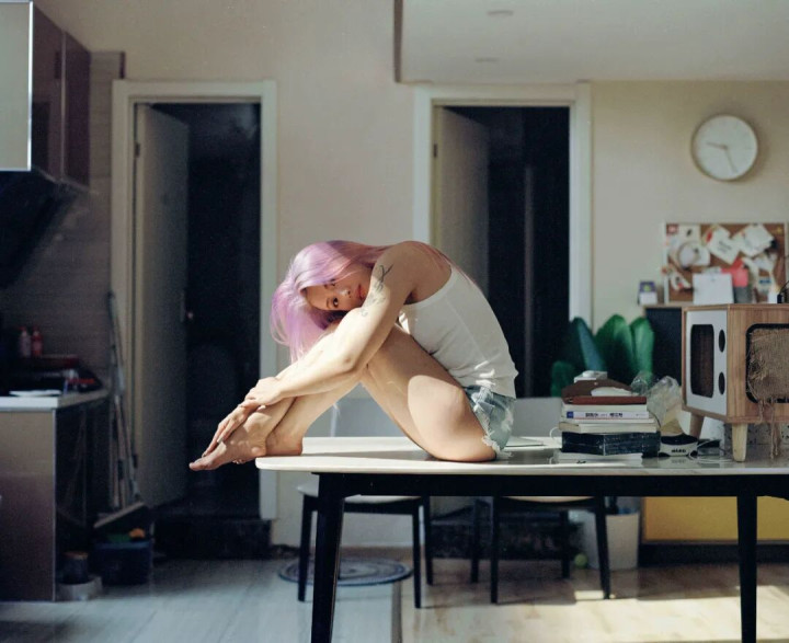 这个女孩W,是2020年底通过微博联系我的,她住在杭州的一个loft公寓里面。拍摄时,突然,她的男朋友裸着上半身从二层下来。我也被吓了一跳,我根本就不知道还有别人在,当时想:干脆就让他们一起拍。